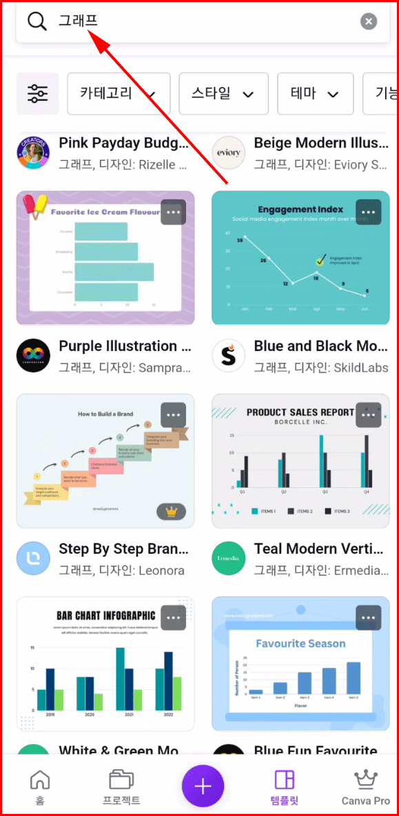 2. 검색창에서 '그래프’를 검색하고 원하는 그래프 유형을 선택합니다. 예를 들어, 막대그래프, 선 그래프, 원형 차트 등이 있습니다.