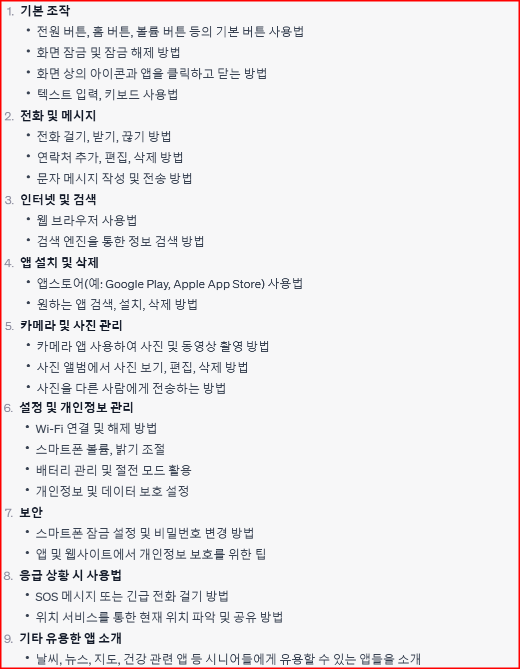 노년들을 위한 스마트폰 교육 컨셉을 이렇게 잡았습니다.