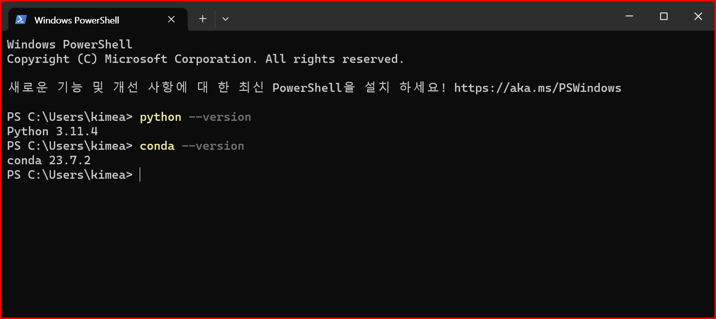 - 설치가 완료되면 터미널(또는 Anaconda Prompt)에서 `conda --version` 또는 `python --version` 명령을 실행하여 설치된 아나콘다와 파이썬의 버전을 확인할 수 있습니다.
