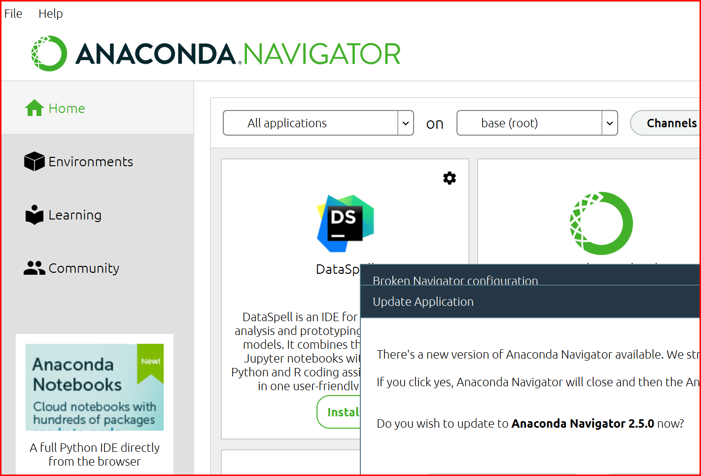 그래픽 환경의 아나콘다 네비게이터