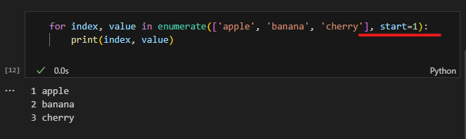 for index, value in enumerate(['apple', 'banana', 'cherry'], start=1):