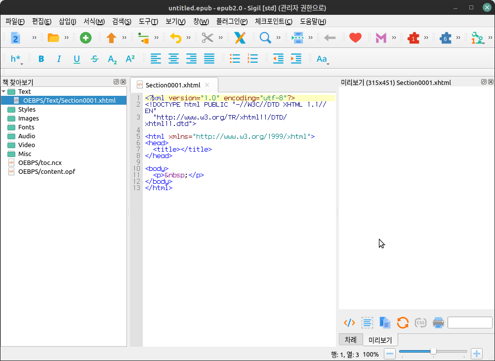 리눅스에서 전자책 편집기 'Sigil' 사용법
