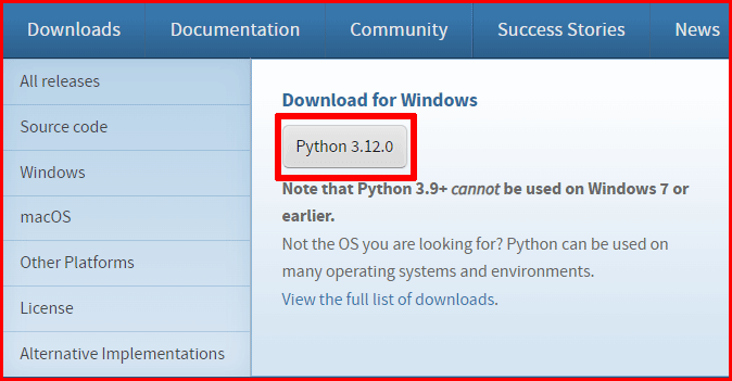- 윈도 사용자의 경우, 'Download for Windows' 섹션을 볼 수 있습니다. 거기서 가장 최신 버전의 파이썬을 클릭하여 다운로드합니다.