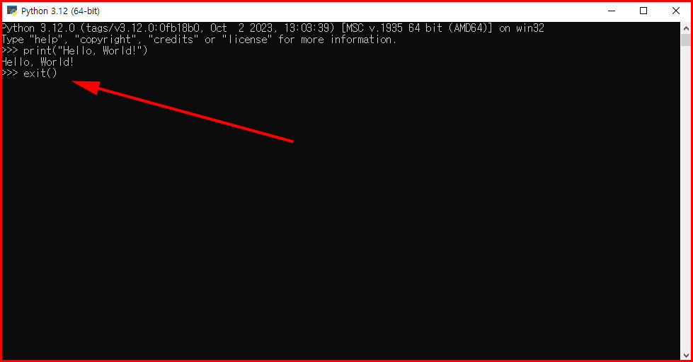 exit()를 입력하거나Ctrl+Z를 누른 다음Enter키를 눌러 종료합니다.