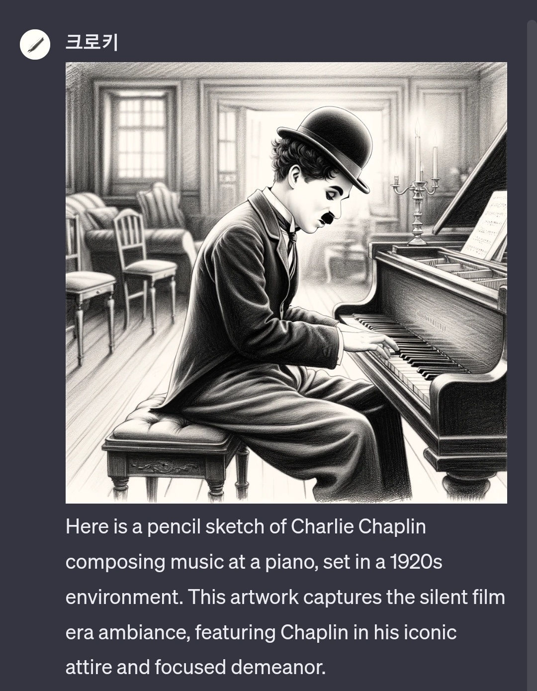 사용자가 자신이 필요한 챗봇을 만들어 사용할 수 있는 GPT가 GPT의 복수 GPTs입니다. 제가 사용하는 '크로키'는 연필 스케치 챗봇입니다.