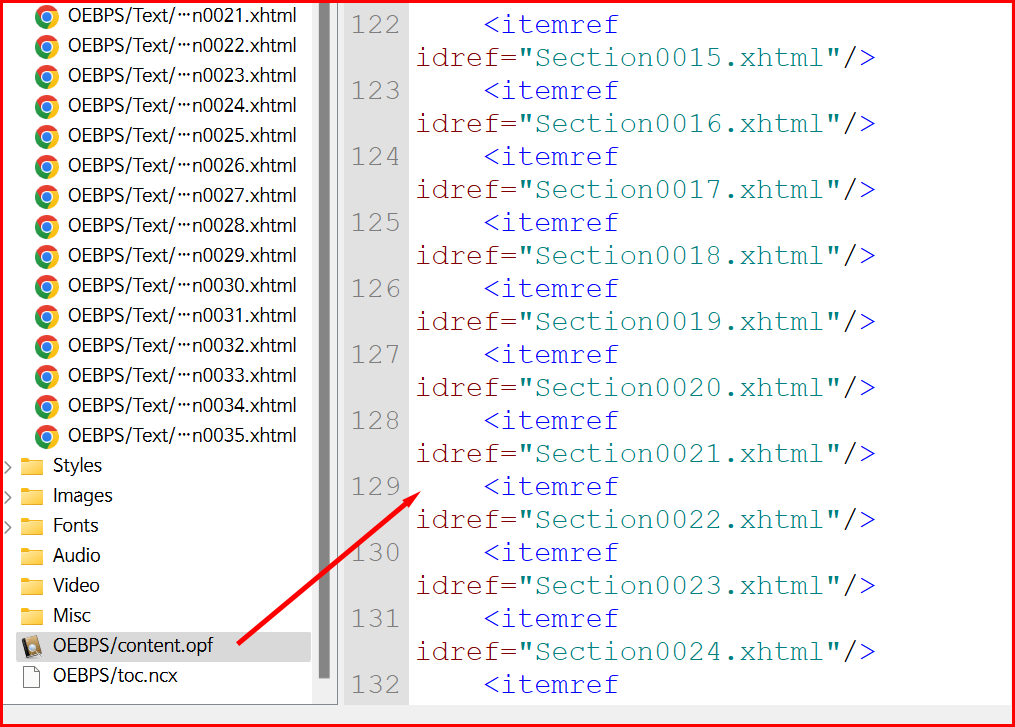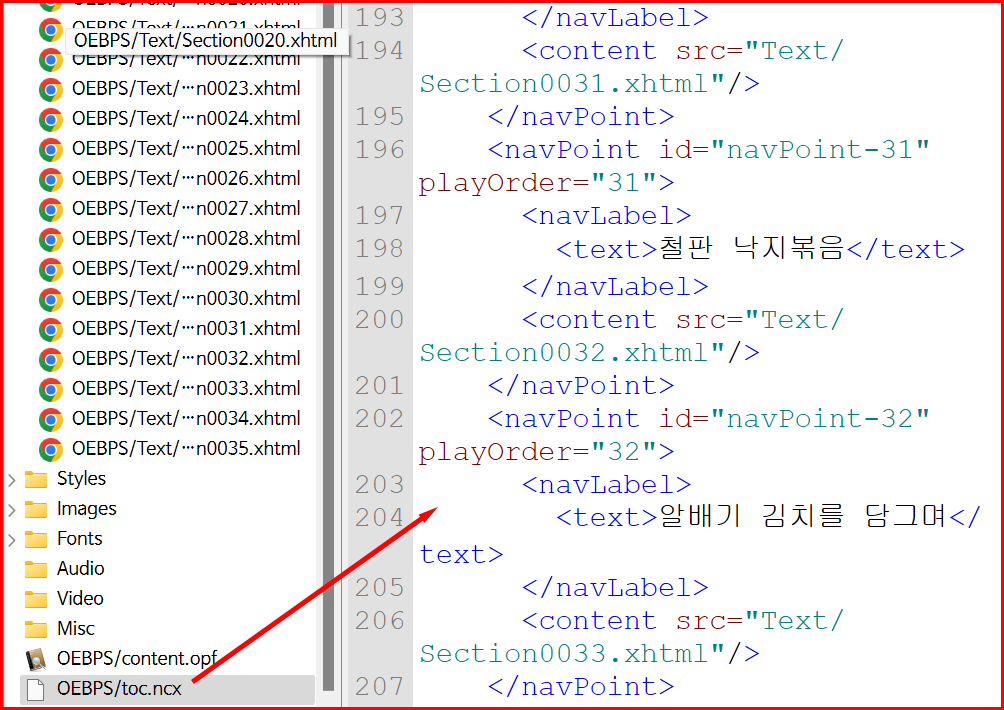 content.opf의 매니페스트에 나열된 파일에 대한 참조를 포함합니다.