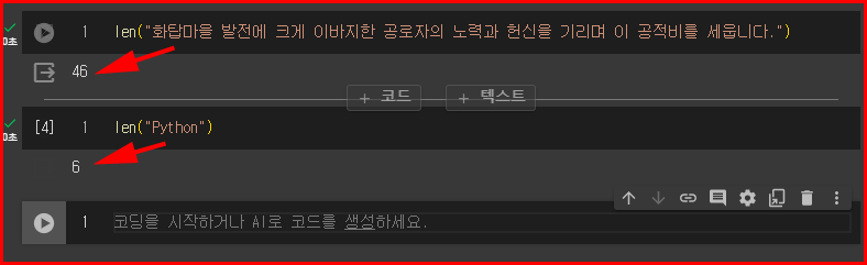 예를 들어, 문자열 'Python'의 길이를 알아내려면 다음과 같이 작성합니다: