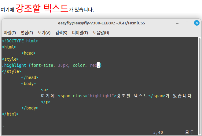 여기에 <span class="highlight">강조할 텍스트</span>가 있습니다.