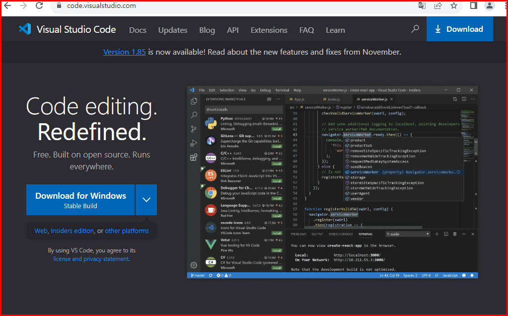 - 웹 브라우저를 열고 Visual Studio Code의 공식 웹사이트인