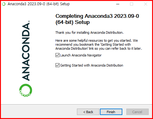 - 설치 완료: 설치가 완료되면, Anaconda Navigator를 포함한 다양한 도구와 라이브러리가 시스템에 설치됩니다. 사용자는 Anaconda Navigator를 통해 이들을 관리하고 실행할 수 있습니다.