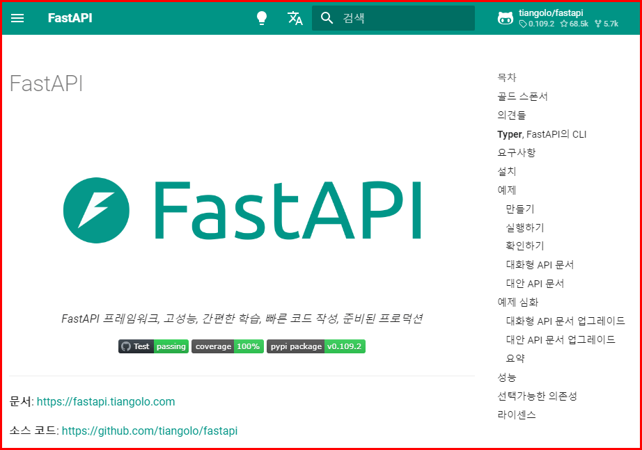 FastAPI는 Python 3.7 이상에서 API를 구축하기 위한 현대적이고 빠른 웹 프레임워크입니다. 다음 시간부터 진행될 웹 프레임워크 학습은 FastAPI입니다.