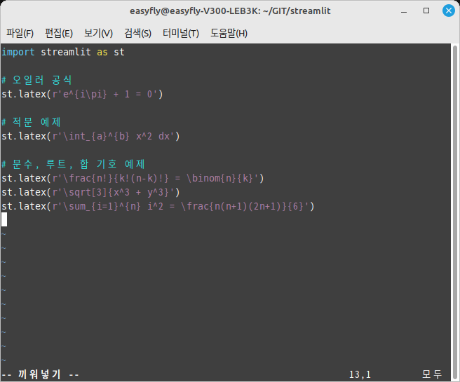스트림릿(Streamlit)에서 '라텍스(LaTeX) 수식 출력' 기능