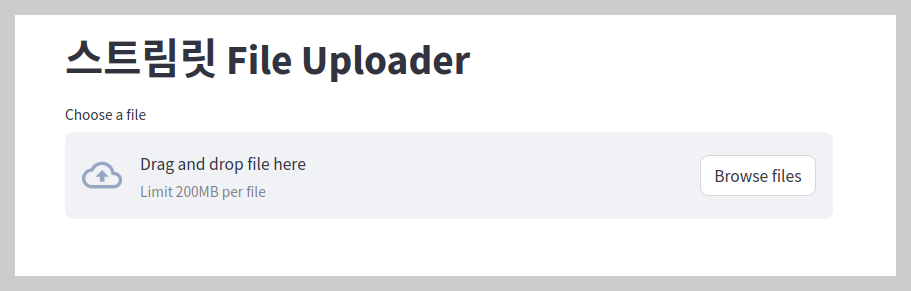 st.file_uploader 함수는 파일을 업로드하기 위한 위젯을 생성합니다. 사용자는 로컬 시스템에서 파일을 선택하여 앱으로 업로드할 수 있습니다.