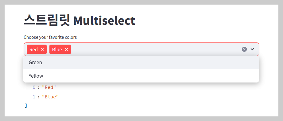 st.multiselect 함수는 여러 옵션을 선택할 수 있는 드롭다운 메뉴를 생성합니다.