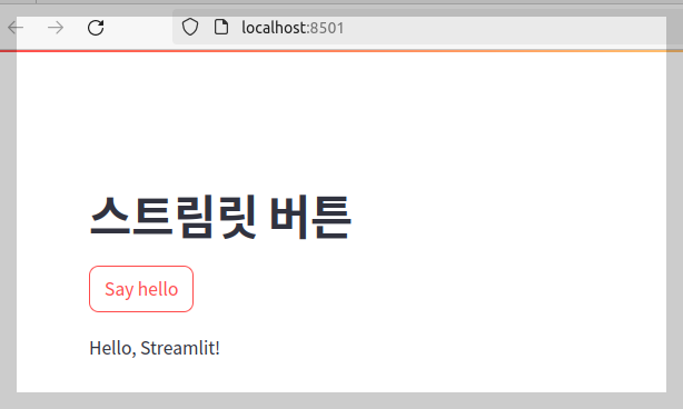 st.button 함수는 클릭할 수 있는 버튼을 생성합니다. 버튼이 클릭되면 True를 반환합니다. 이를 이용하여 버튼 클릭 시 특정 동작을 실행하게 할 수 있습니다.