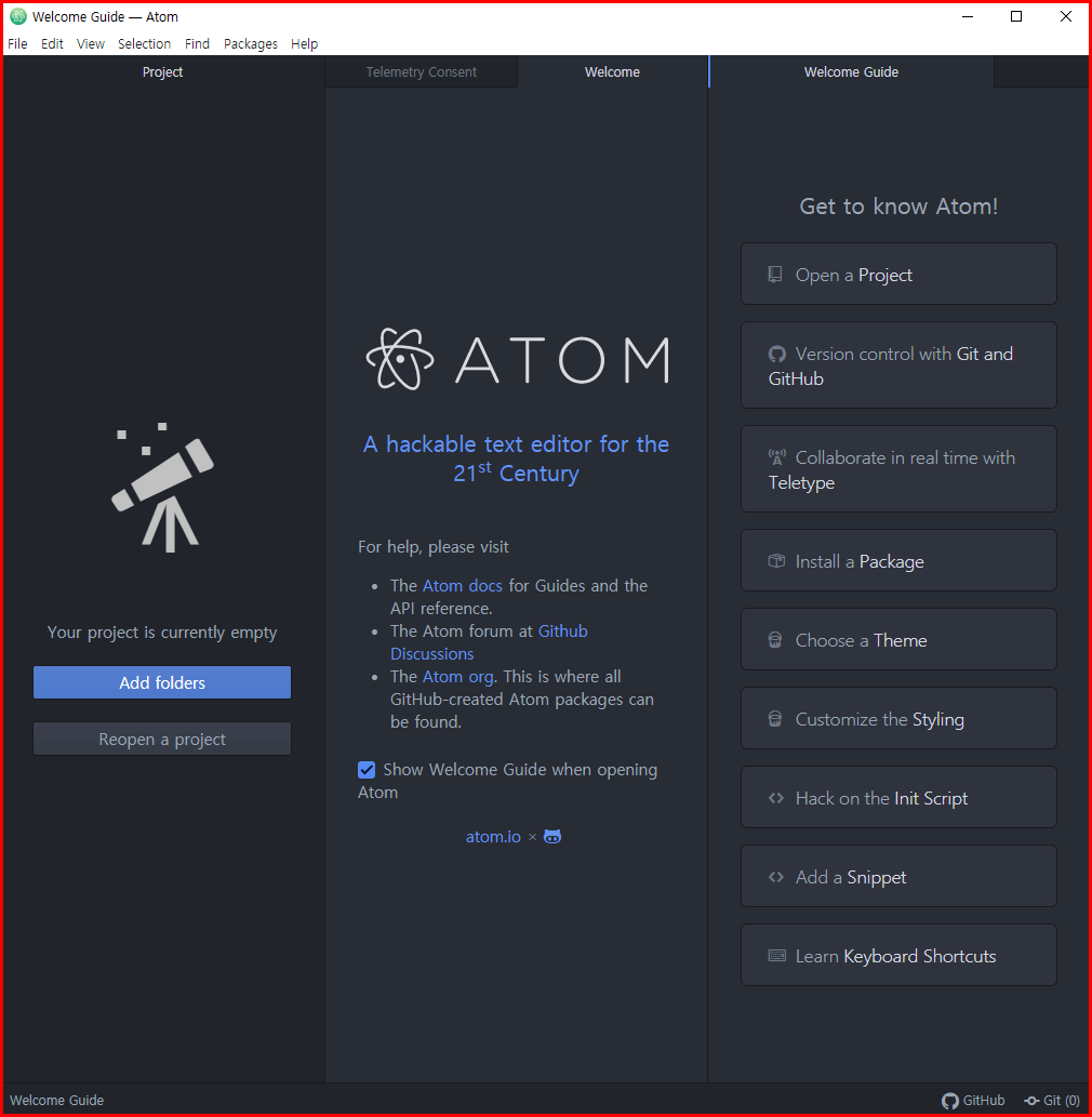 GitHub에서 제공하는 편집기, Atom
