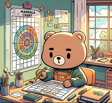 만다라트는 목표 달성을 위해 생각을 조직화하고 아이디어를 확장하는 창의적인 도구입니다. 일본의 사업가 마츠시타 고노스케가 고안한 이 기법은 복잡한 문제를 해결하거나 창의적인 아이디어를 도출할 때 유용하게 사용됩니다. 만다라트는 3×3의 격자 형태로 구성되며, 중앙 칸에는 주제나 목표가 위치하고 나머지 8개의 칸에는 이와 관련된 아이디어나 하위 목표를 채웁니다.
