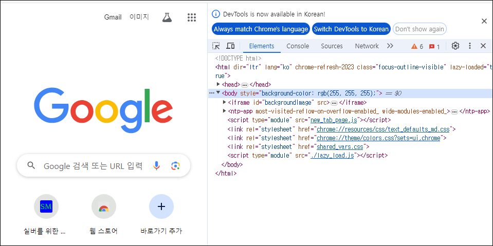 - 우클릭 후 “검사” 선택: 웹 페이지의 아무 곳이나 우클릭하고 나타나는 메뉴에서 “검사” 혹은 “Inspect”를 선택하면 개발자 도구가 해당 요소를 포함하여 열립니다.