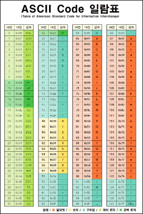 - 문자집합: ASCII는 주로 영어 알파벳, 숫자, 특수 문자를 포함하는 128개의 문자로 구성된 문자집합입니다.