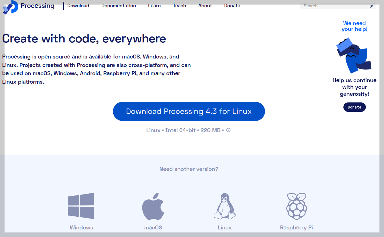 - 웹 브라우저를 열고 프로세싱 공식 웹사이트로 이동합니다.