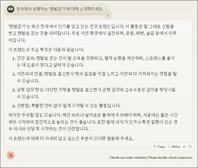- 이해력 강화: Claude는 사용자의 질문에 대한 이해도를 높이기 위해 더 복잡한 문맥을 잘 처리할 수 있도록 설계되었습니다. 이로 인해 대화가 보다 자연스럽고 사용자 의도를 잘 파악할 수 있습니다.
