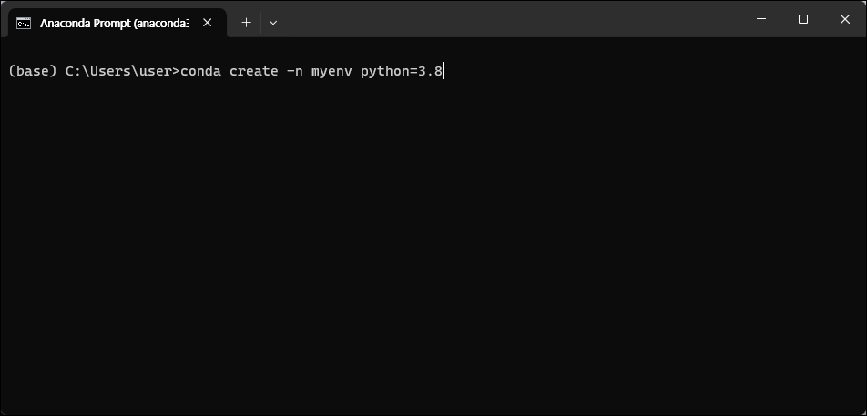 conda create -n myenv python=3.8(또는 conda create --name myenv python=3.8)myenv: 가상 환경 이름 (원하는 이름으로 변경 가능).python=3.8: 사용할 파이썬 버전 (필요에 따라 변경 가능).