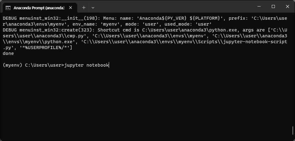 python -m ipykernel install --user --name myenv --display-name "Python (myenv)" - 이후 Jupyter Notebook에서