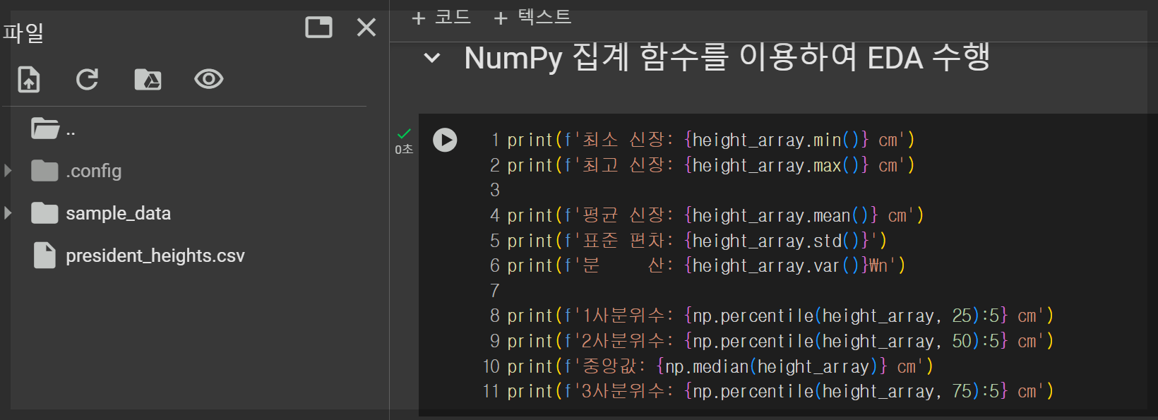 - 위 코드를 통해 Google Drive를 Colab에 마운트할 수 있으며, Drive의 파일을 Colab 환경에서 직접 사용할 수 있습니다.