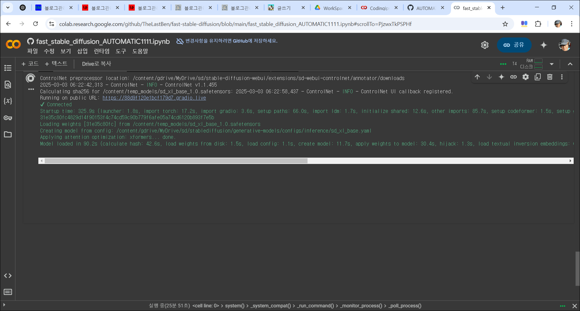 로컬 PC 성능이 부족한 경우, 코랩에서 실행하는 것이 가장 좋은 방법입니다.