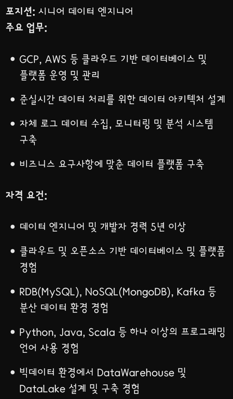 "당신은 면접 전문가입니다. 채용 후보자가 원하는 직무에 적합한지 가장 확실하게 판단할 수 있는 질문을 작성해야 합니다. 다음은 '시니어 데이터 엔지니어'의 채용 공고입니다."