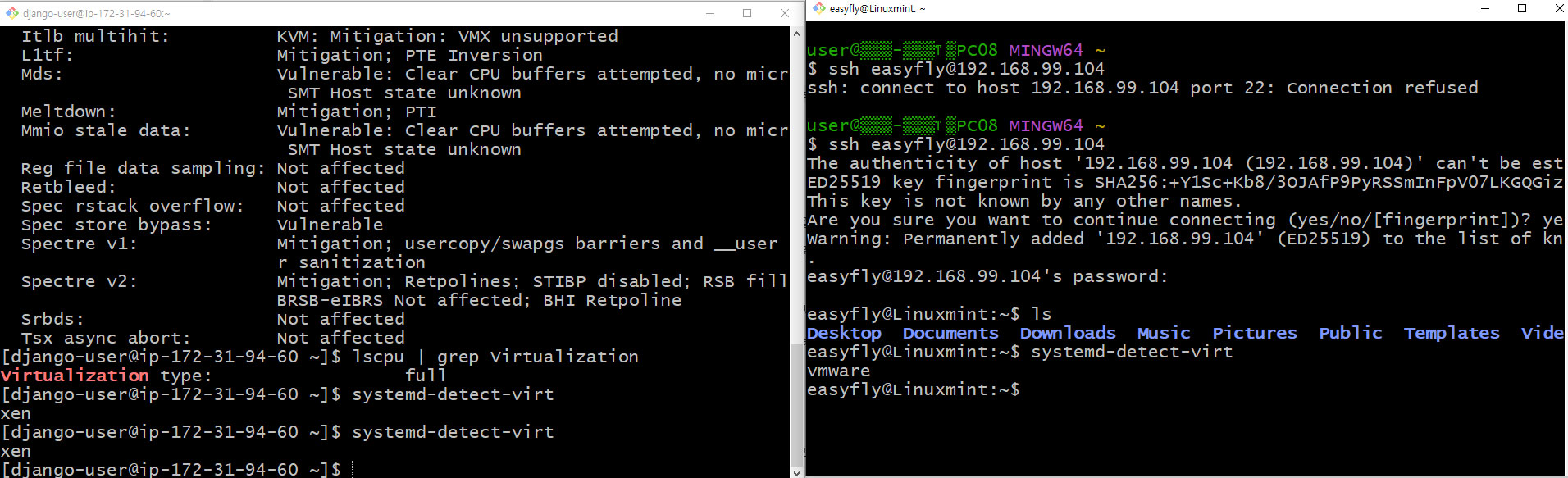 - user@IP주소 형식으로 입력 (예: easyfly@192.168.99.104)