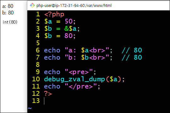 이렇게 하면 $a와 $b는 같은 메모리 공간을 공유하게 됩니다.