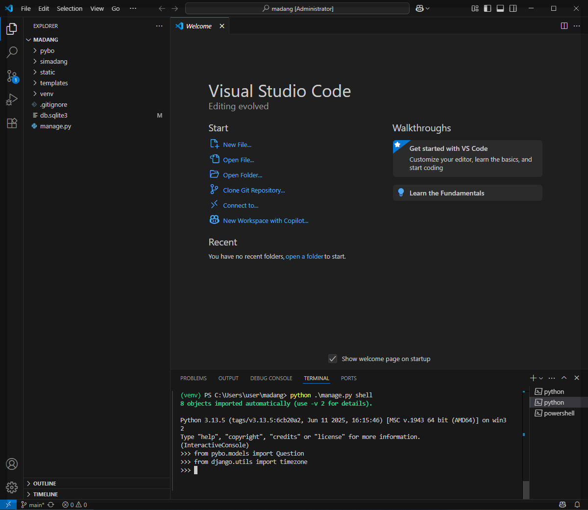 다음은 Django 셸을 실행하고 사용하는 기본적인 방법을 순서대로 안내드립니다.