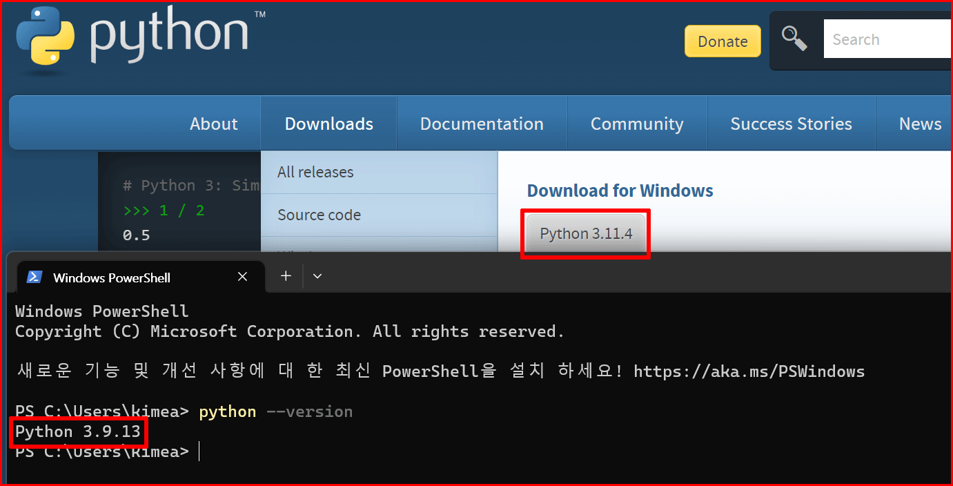 ChatGPT를 달래가면서 구체적 설명을 끌어냈습니다. 그 과정은 생략하겠습니다. 설치 방법을 확인하고 버전을 확인했는데 최근 버전과 내 컴퓨터에 설치된 버전이 차이가 있습니다.