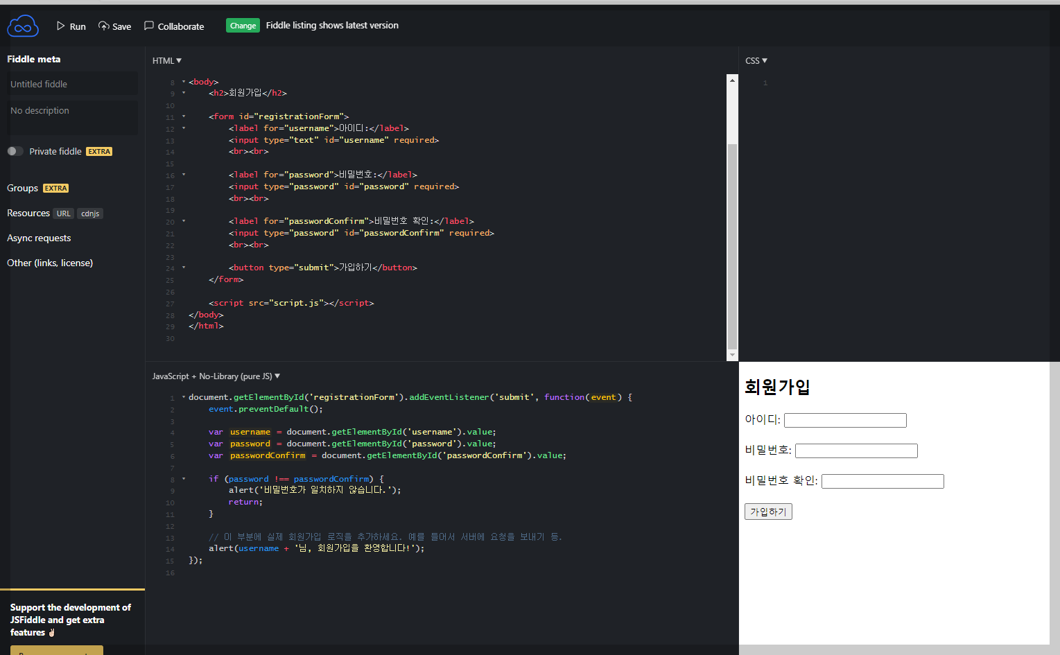 ChatGPT 코딩을 이용하여 회원가입 웹페이지 구성