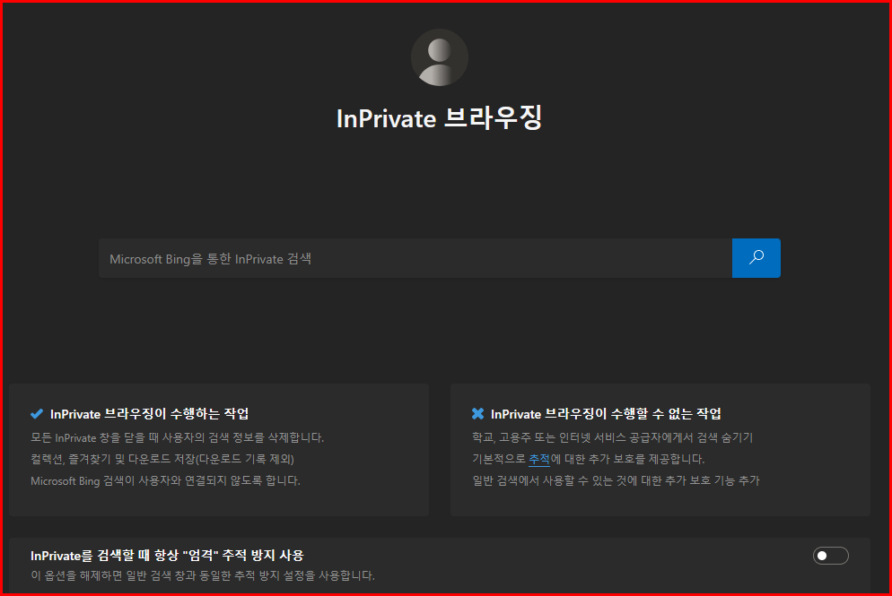 키보드 단축키를 사용하여 빠르게 'InPrivate' 모드를 시작할 수도 있습니다