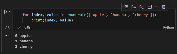 for index, value in enumerate(['apple', 'banana', 'cherry']):