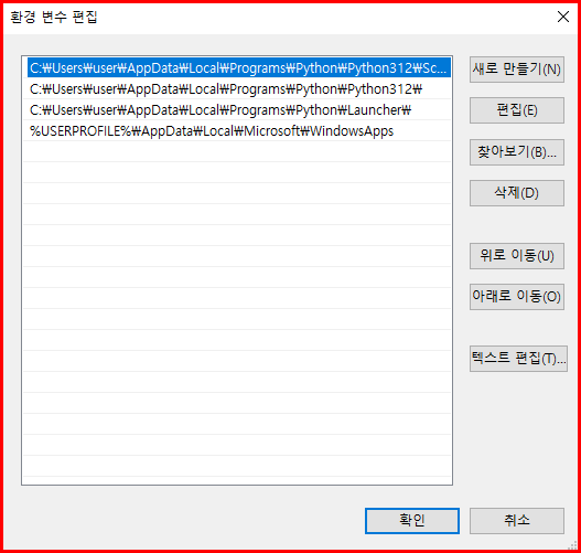 위의 과정을 통해 환경 변수에 파이썬 경로를 수동으로 추가할 수 있으며, 이후에는 어떤 디렉터리에서도 파이썬을 실행할 수 있게 됩니다.
