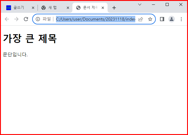 HTML 소스를 'index.html'로 저장하고 크롬에서 불러낸 모습은 아래와 같습니다.