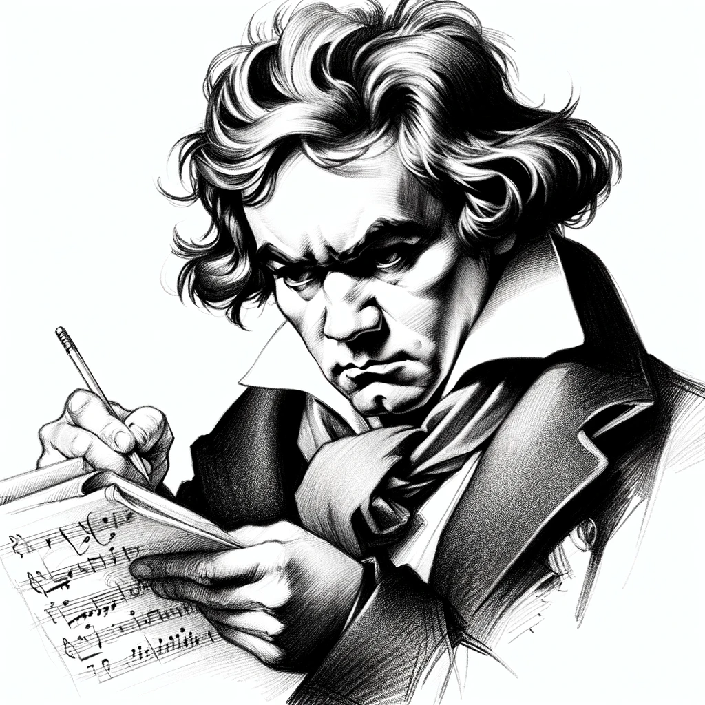 악성으로 불리는 베토벤을 그리게 했습니다. '작곡하는 베토벤' 프롬프트로 그려진 결과입니다.