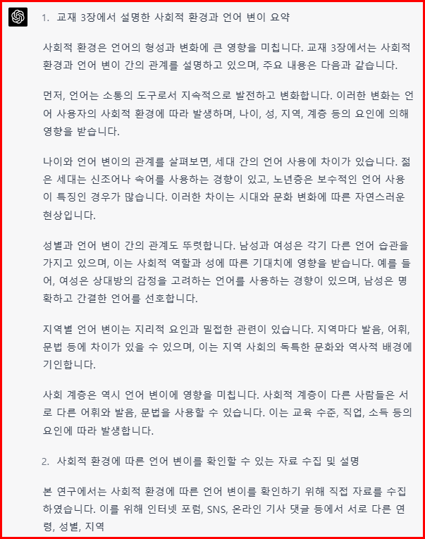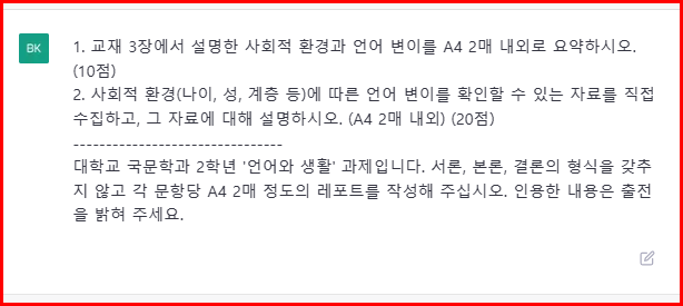 국문과 '언어와 생활' 과제를 인공지능 힘을 빌려 작성하는 방법을 시도해 보겠습니다.