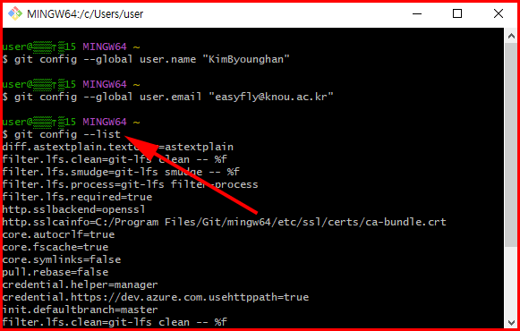 git config --list명령어를 사용하여 현재 설정된 Git 구성을 확인할 수 있습니다.