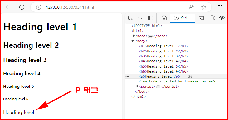 Hn 태그가 일반적으로 굵게 표시되고 글자 규격도 크지만 H4 이하는 문단을 이루는 글자와 차이가 없거나 작습니다. 제목을 구성한다는 상징적 의미에서 볼드체로 사용되지만 글자 사이즈는 H5 이하는 P 태그보다 작습니다.