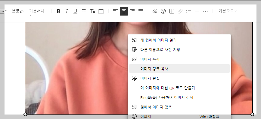 이미지 링크를 복사하는 방법은 이미지에서 우클릭을 하여 나타나는 팝업 메뉴에서 '이미지 링크 복사'를 통해 링크 주소를 얻습니다. 클립보드에 얻어진 내용을 이미지 검색 창에 활용하는 겁니다.