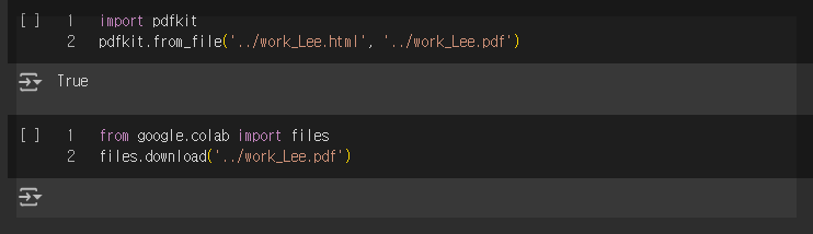마지막으로, 생성된 PDF 파일을 다운로드합니다. 코랩의 파일 브라우저를 사용하여 PDF 파일을 다운로드할 수 있습니다.