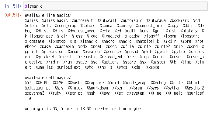 주피터 노트북에서 사용할 수 있는 마술 명령어(Magic Commands)