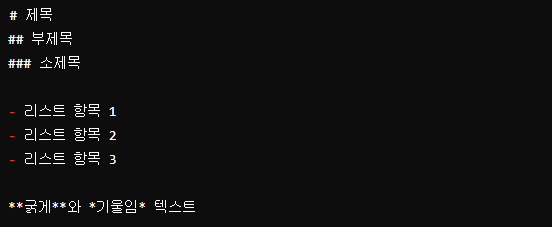 코드: 인라인 코드코드블록: 코드 블록- 텍스트: 링크
