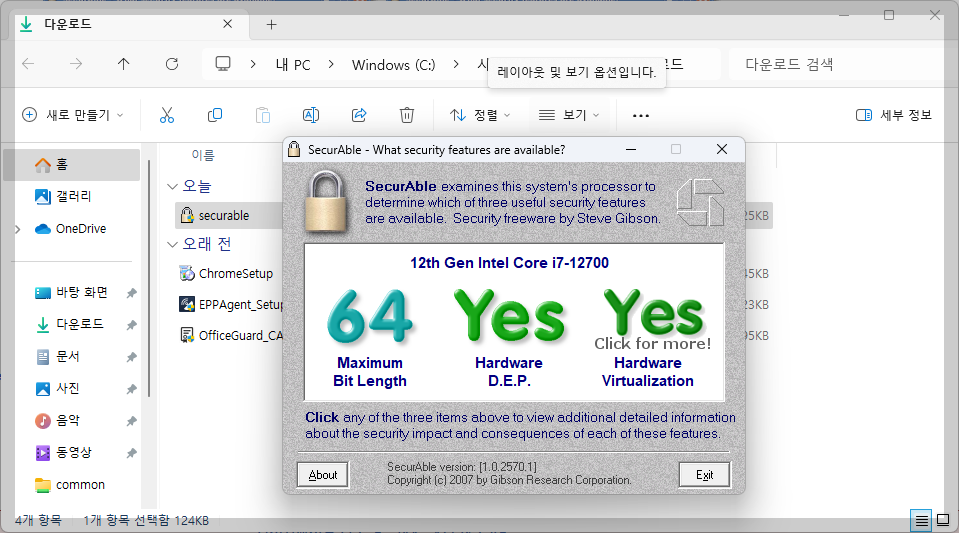 SecurAble은 Windows 기반 시스템에서 CPU의 64비트 지원 여부, 하드웨어 DEP, 가상화 기술 지원 여부를 간단히 확인할 수 있는 경량 소프트웨어입니다. 특히 하드웨어 지원 여부를 빠르게 파악하려는 사용자에게 유용하며, 설치가 필요 없는 간편한 실행형 프로그램입니다.