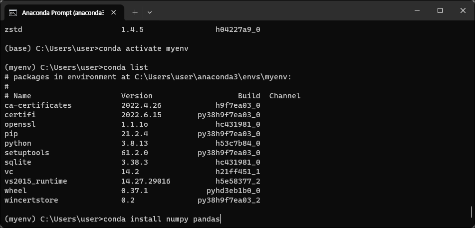conda install numpy pandas - 또는