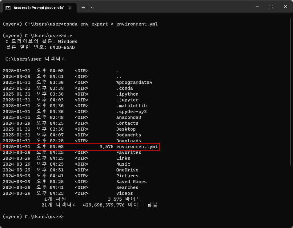 environment.yml파일을 사용해 동일한 환경을 생성하려면 다음 명령어를 실행합니다:conda env create -f environment.yml